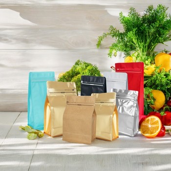 Riciclare i chicchi di caffè con chiusura a fondo piatto con stampa personalizzata a otto lati sacchetti di imballaggio con valvola e cerniera